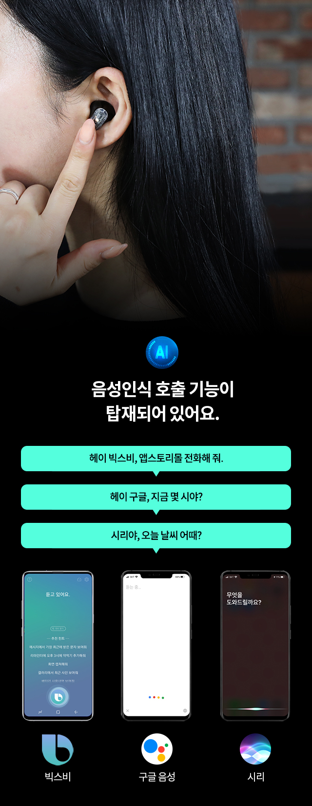 ¼ÒÀ½ °¨¼Ò ±â´É°ú À½¼º Àü´Þ¿¡ ÃÖÀûÈµÈ Á֯ļö¸¦ µ¿½Ã¿¡ Àû¿ëÇÑ µà¾ó ¸¶ÀÌÅ© žÀç·Î ¹Ù·Î ¿·¿¡¼ ¸»ÇÏµí ¼±¸íÇÑ À½¼ºÀ» Àü´ÞÇÒ ¼ö ÀÖ½À´Ï´Ù.