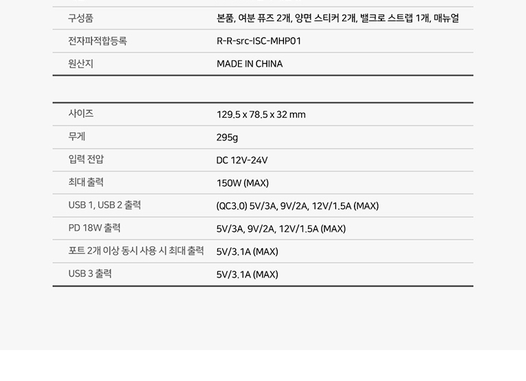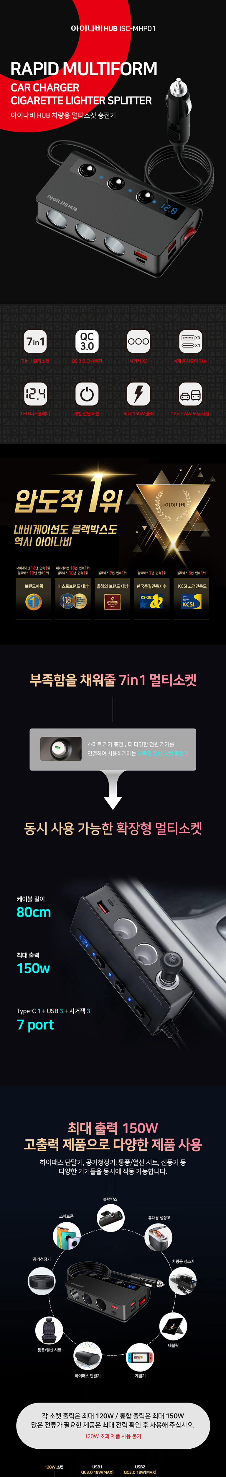 ÃÖ´ë Ãâ·Â 150W & ½Ã°ÅÀè 3+USB 4 ÃæÀü